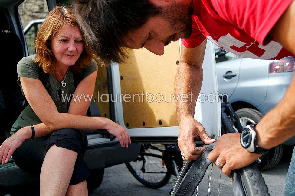Le Bordelais à vélo / Cycling around Bordeaux - Pause crevaison - Puncture break